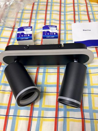 Set de dos focos LED de color negro. Incluye dos bombillas LED. - Diseño moderno y elegante. - Acabado en negro mate. - Incluye dos bombillas LED.