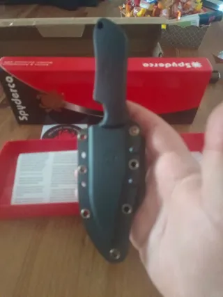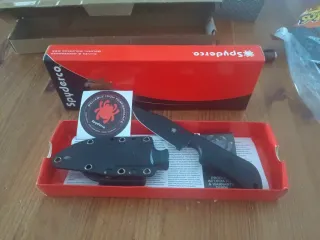 Cuchillo de hoja fija en color negro, ideal para actividades tácticas o de exterior. Incluye funda. - Hoja de acero. - Empuñadura ergonómica. - Funda de Kydex. - Fabricado en USA.
