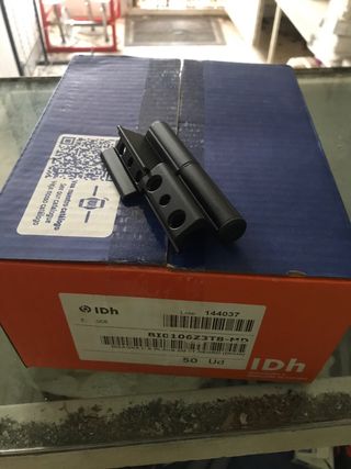 Bisagras de aluminio de la marca IDh, modelo S/6000-4000 3T. - Color: Blanco - Color: Negro. - Cantidad: 50 unidades cada caja. - Referencia de control: OF39219. - Código: 830610-9011.