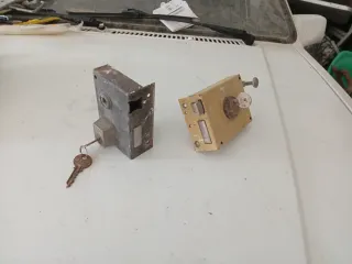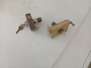 Se venden dos cerraduras antiguas, una de ellas con su llave. - Cerradura metálica plateada con llave. - Cerradura metálica dorada con llave. Se vende 40€ la de una sola llave y la otra con dos llaves 30€