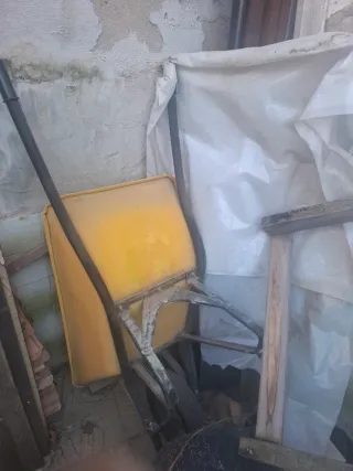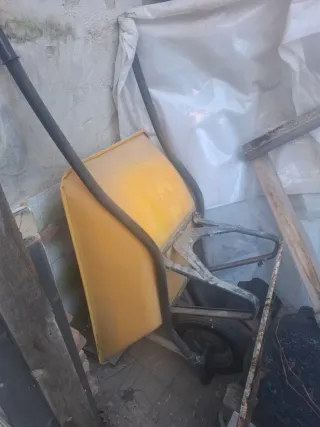 Carretilla de obra con cubeta amarilla. - Estructura metálica. - Rueda de goma.