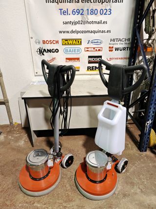 Pulidora abrillantadora rotativas fregadora Nueva a estrenar procedente de liquidación de plato 45cm, máquinas fabricadas a conciencia con peso y potencia para un mejor trabajo, con plato de arrastre y cepillo, posibilidad con depósito o sin el, similar a Karcher, nilfisk, wirbel, sorma, Columbus, lux, serio y fiable uso WhatsApp. Precio más iva unidad.