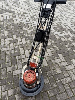 Pulidora de suelos en buen estado, ideal para mantenimiento de superficies. - Incluye varios discos de pulido. - Mango ajustable para mayor comodidad. - Ruedas para facilitar el transporte. Entrego en Valladolid no envio