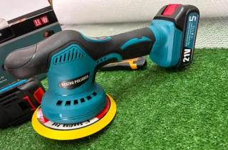 Pulidora orbital inalámbrica con batería de litio hasta 6000RPM - Voltaje: 21V - Capacidad de batería: 4.0Ah - Incluye cargador y dos baterías. - Incluye varios discos de pulido. - Artículo nuevo a estenar.