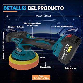 UNIDADES LIMITADAS A ESTE PRECIO TAN BAJO! -SI ESTA EL ANUNCIO TENEMOS UNIDADES! . Pulidora orbital profesional NUEVA a estrenar como todos los productos de nuestra tienda. -Velocidad: 2800-6000 rpm Ajuste de velocidad en 8 marchas - 2 baterías de 21V con capacidad 7500 mAh También se incluye almohadilla de lana, almohadilla ondulada, papel de lija y cargador. Entra en nuestro pertil donde encontraras todo tipo de productos y herramientas nuevas a estrenar y si te llevas varias cosas te hacemos descuento. Te esperamos!