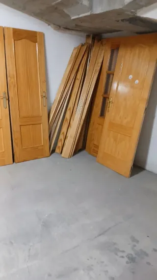 Se venden 10 puertas macizas de madera, ideales para interiores. - Material: Madera maciza - Diseño clásico con molduras - Acabado en tono caoba