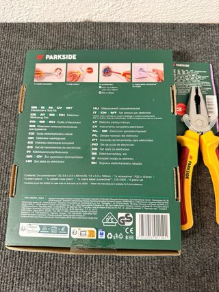 Set de herramientas para electricista de la marca Parkside. Incluye destornilladores y alicates. -2 destornilladoresI, 1 destornillador 1 alicate universal 1 alicate de corte diagonalI, 1 alicate de punta semirredondaI, 1 buscapolos - Herramientas aisladas para trabajos hasta 1000V. Parkside performance 4 8 12 2 #Perforador #LlaveImpacto #Angular #Baterias #Cargador #HerramientasProfesionales #Obra #Reformas #Construccion #PowerTools #EntregaRapida oferta Milwaukee,Makita, Dewalt,, Bosch, Hilti, Worx, Aeg, Metabo, Einhell, Perfomance, Carpintero, batería, pintura, reforma, obra, metal, Decapadora, percusión, radial,