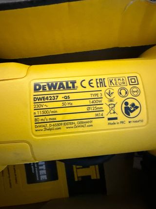 Amoladora, radial Dewalt DWE4117Q para trabajar continuamente(Profesional).Totalmente nueva, en su caja original. Nunca usada.Arranque suave. Diámetro de disco 125mm. Potencia 950W.