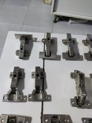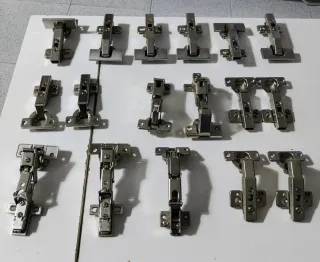Se venden 18 bisagras para muebles de cocina. Son de metal, de color plateado y parecen estar en buen estado. - Ideales para la reparación o sustitución de bisagras viejas o dañadas. - Se venden en lote. - Perfectas para actualizar tus muebles de cocina. NO NEGOCIABLE NO ENVÍO no leer : hilti metabo makita wurth Dewalt Bosch milwaukee taladro atornillador percutor construcción obra nivel laser gratis herramientas regalo hoy chollo lijadora caladora Pladur pintura radial amoladora