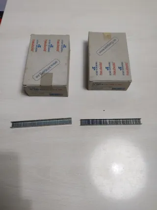 Se venden dos cajas de grapas para grapadora neumática. Las cajas parecen estar en buen estado. - Ideales para grapadoras neumáticas. - Dos cajas incluidas en la venta. - Grapas de metal. NO NEGOCIABLE NO ENVÍO no leer : hilti metabo makita wurth Dewalt Bosch milwaukee taladro atornillador percutor construcción obra nivel laser gratis herramientas regalo hoy chollo lijadora caladora Pladur pintura radial amoladora