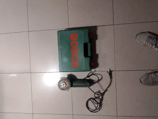 Radial Bosch en buen estado, lista para usar. Incluye su maletín original para guardarla y transportarla fácilmente. - Maletín de plástico verde. - Cierre de seguridad. *No tengo la llave para sacar el disco y antes se podía con la mano.