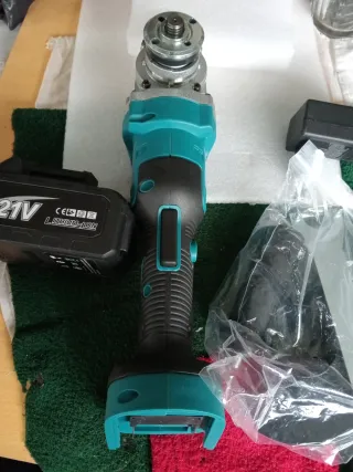 Se vende amoladora angular a batería de 21V, ideal para trabajos de corte y desbaste. - Incluye dos baterías de litio de 21V. - Cargador de batería. - Empuñadura auxiliar. - Disco de corte. - Llave de montaje. - Protector de disco. Potente y versátil.