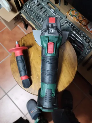 Radial Parkside en color verde y negro. - Empuñadura auxiliar roja y negra. - Protector metálico. - Incluye disco.