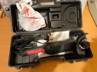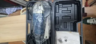 Amoladora angular eléctrica en su maletín. - Incluye manual de instrucciones. - Maletín de transporte negro.