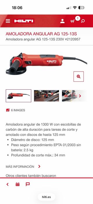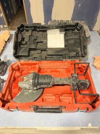 Radial Hilti a batería, ideal para trabajos de corte y desbaste. - Marca: Hilti - Tipo de alimentación: Batería - Incluye disco de corte.