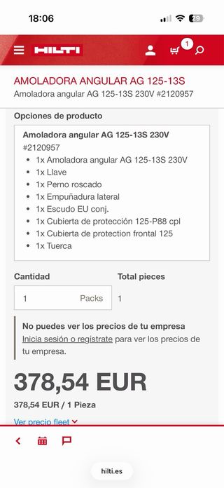 Radial Hilti AG 125-13S de 1300 W, ideal para tareas de corte y amolado. Aún sin estrenar. - Diámetro de disco: 125 mm - Peso: 2.5 kg - Profundidad de corte máx.: 34 mm