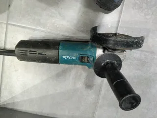 Radial de la marca Makita. Herramienta eléctrica con empuñadura auxiliar. - Cuerpo principal en color negro y verde. - Interruptor de seguridad. - Protector de disco. 1400w es una buena máquina también le cabe el disco de 125