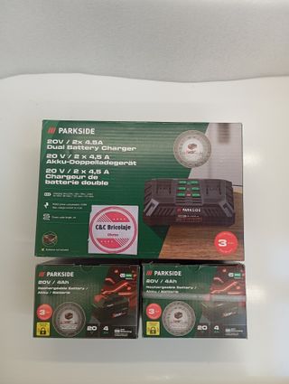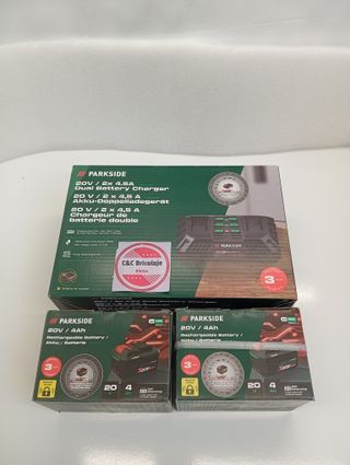 Cargador Doble rápido Parkside 20V +2 baterías 4ah