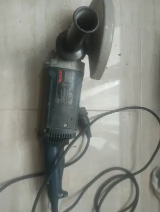 En funcionamiento. Radial antigua de la marca Bosch, ideal para trabajos de corte y desbaste. Muestra signos de uso y paso del tiempo, lo que le confiere un carácter vintage. Te mando video si la quieres ver funcionando. - Disco de corte grande. - Mango auxiliar. - Cable de alimentación. Se hace envios