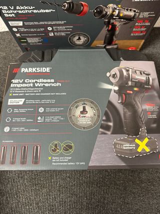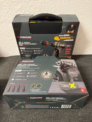 Se vende lote de dos herramientas Parkside de 12V. - Taladro/atornillador inalámbrico Parkside 12V. - Llave de impacto inalámbrica Parkside 12V. - Incluye accesorios para la llave de impacto. -1 Batería 5ah y 1 cargador 6 Ah Parkside performance 4 8 12 2 #Perforador #LlaveImpacto #Angular #Baterias #Cargador #HerramientasProfesionales #Obra #Reformas #Construccion #PowerTools #EntregaRapida oferta Milwaukee,Makita, Dewalt,, Bosch, Hilti, Worx, Aeg, Metabo, Einhell, Perfomance, Carpintero, batería, pintura, reforma, obra, metal, Decapadora, percusión, radial, Amoladora, sierra, compresor llave impacto, atornillador, Percutor,
