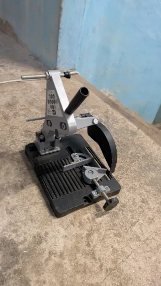 Soporte para cortar con radial. Permite sujetar la radial de forma segura para realizar cortes precisos. - Base de metal resistente. - Ajuste de ángulo para cortes inclinados. - Empuñadura ergonómica.