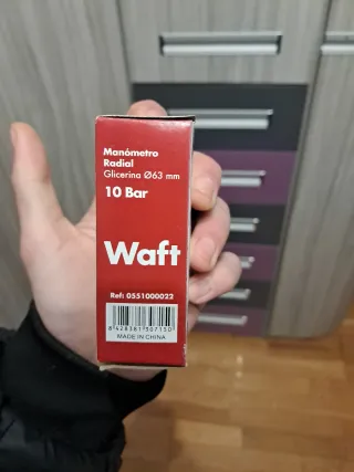 Manómetro radial de glicerina de la marca Waft. - Diámetro de la caja: 63 mm. - Rango de presión: 10 Bar. - Conexión: 1/4 Macho. - Certificación CE.