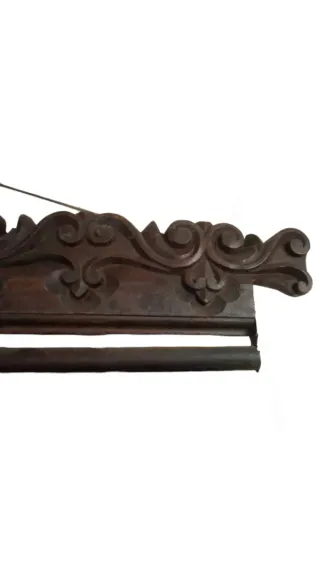 Tabla antigua tallada de roble. 111 cm. de largo x 18'5 cm. de alto. Sirve como decoración de puerta, para colocar un estor, o como perchero. ● Entrega en Nestares (Cantabria).