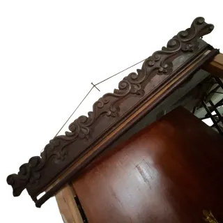 Pieza de madera antigua con un diseño curvo en la parte superior y detalles de remaches.108x 86 cm - Fabricada en madera. - Presenta remaches metálicos a lo largo de las uniones.