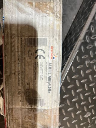 Rollo de hilo de aluminio para soldadura MIG. - Marca: OERLIKON - Modelo: ALUFIL AIMg4,5Mn - Norma: EN ISO 18273-SAI 5183 / AWS SFA 5.10-ER 5183 - Fabricado en la UE - Peso: 1.00 kg