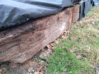 Viga de madera robusta, ideal para proyectos de construcción o decoración rústica. - Material: Madera. - Aspecto: Textura natural y desgastada.