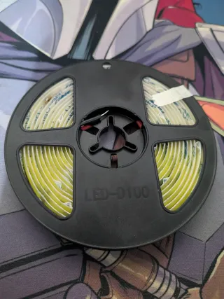 Tira de LED flexible COB de 3 metros de longitud. Proporciona una luz blanca fría de 6000K y cuenta con adhesivo para una fácil instalación. - Tecnología COB para una iluminación uniforme. - Color de luz: Blanco frío (6000K). - Longitud: 3 metros. - Adhesivo incorporado.