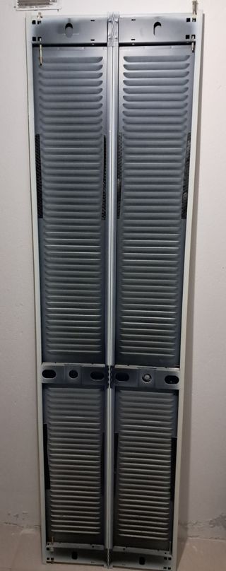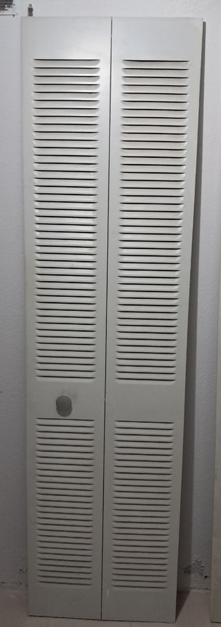 Puerta metálica articulada blanca para armario con rejilla de ventilación y pomo gris. Para montar sobre raíl (no incluido). Apertura a izquierda. Mas puertas en mi perfil. En buen estado de conservación, aunque sucia y con pequeños restos de obra. Dimensiones: 60 × 223 x 2.8cm (Ancho x Alto x Fondo). Rejilla: 23cm A recoger junto a Institución Libre de Enseñanza, 101 (Madrid). No envío, ni intercambio, ni reservo, ni llamo. Si el anuncio está publicado es porque sigue disponible. Sólo atiendo mensajes por la app.