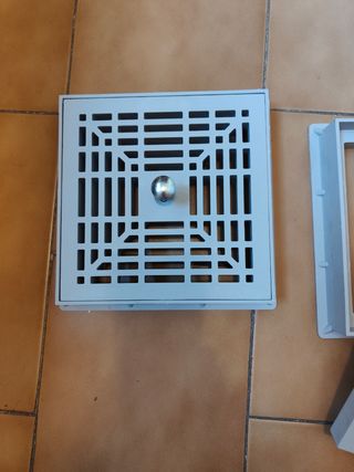 Rejilla de ventilación de plástico, de medidas 15 x 15 x 3.7 cm. Era de un baño nuevo que se ha demolido.