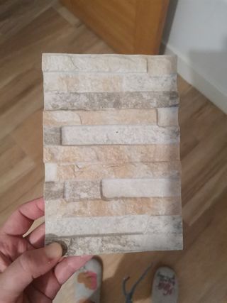 Se venden 15 plaquetas de pared de la marca Saloni. - 10 plaquetas lisas color BL (2 cajas: 2m2) - 5 plaquetas relieve color ocre grisáceo (1 caja: 1m2) - Total: 3m2 - Medidas: 75x25cm.