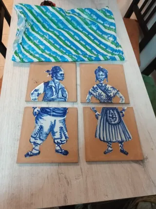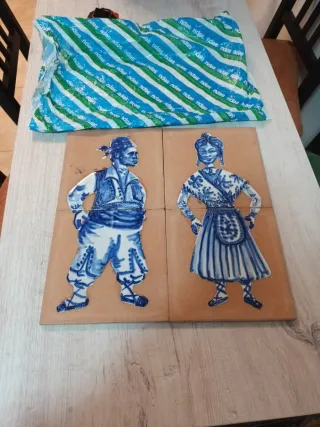 4 baldosas nuevas de 15 por 15 con unos personajes vestidos con el traje aragonés, nuevas, ideales como decoración o ponerlas en pared