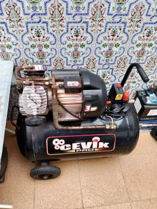 Compresor de aire de la marca CEVIK PRO. - Modelo: 3HP - Color: Negro - Ruedas para fácil transporte Incluida manguera de 10 metros