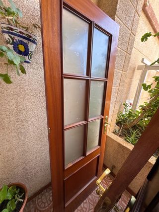 Se venden puertas de paso en color marron oscuro, vintage, de buena calidad desde 50€. Dispongo de: - 2 de 62cm 1 apertura izq. otra apertura a la derecha, para baños. - 3 de 72 cm, 2 apertura izquierda y 1 apertura a la derecha. Para habitaciones. - 1 puerta para cocina o salón con 6 cristales. Apertura a la derecha. - Puerta de salón con cristales de 140 cm x 210 cm, con apertura a la derecha. - Puerta de salida a lavadero, de madera con ventana adosada. La ventana 57 cm de ancho y puerta de 70 cm de ancho. Altura de ambas de 2'15 cm. Desmontaje y transporte corren a cargo del comprador. Estará por tiempo limitada.