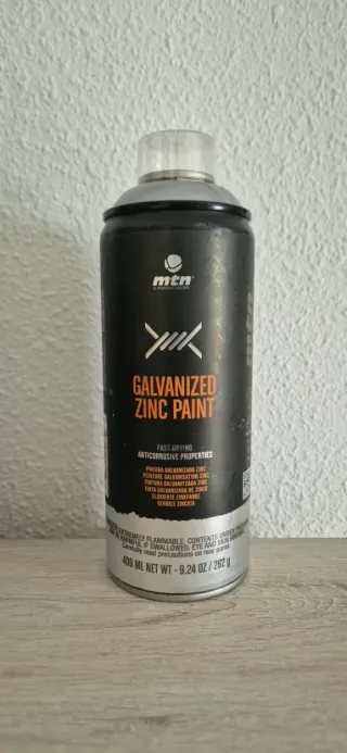 Spray de pintura MTN Galvanized Zinc Paint. Ideal para proteger superficies. - Pintura de zinc galvanizado. - Secado rápido. - Propiedades anticorrosivas. - Contenido: 400 ml. - Está sin usar.