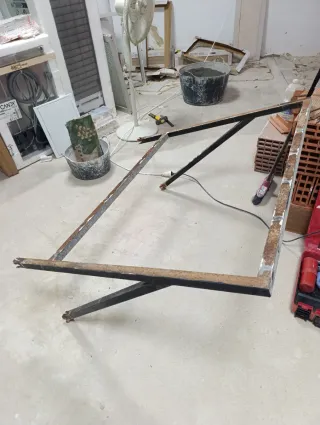 Estructura metálica para tejadillo. - Medidas: 110 cm de ancho x 95 cm de alto. - Material: Metal con acabado en gris. un poco de oxido por arriba pero fácil de quitar