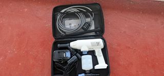 Hidrolimpiadora portátil a batería, ideal para limpieza exterior. - Incluye pistola, manguera, cargador y batería. - Depósito para jabón. - Se presenta en un maletín de transporte. costo 140 euros y no se ha usado