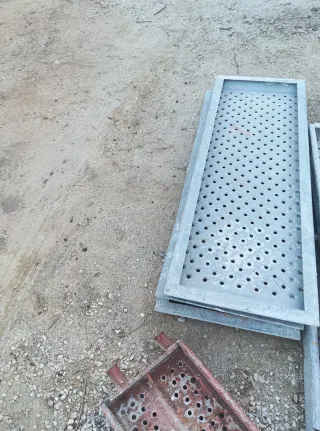 Se venden chapas metálicas para andamio. Son resistentes y están listas para su uso. - Material: Metal galvanizado. - Diseño perforado para drenaje y agarre.