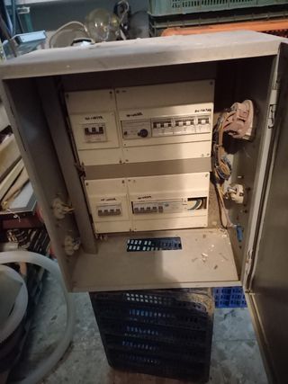 Cuadro eléctrico para obras, de segunda mano. Ideal para instalaciones temporales en construcciones.dispongo de otra unidad semejante.precio del lote de dos uds. 150 €. - Dimensiones aproximadas: 0.60 m x 0.50m x 0.25m.