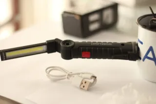 Linterna portátil con diseño moderno y compacto. Incluye cable de carga. - Diseño elegante en color negro. - Batería recargable, incluye imán y gancho en la parte inferior. Varios tipos de luces y modos. - Puerto de carga USB.