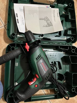 Taladro percutor Bosch UniversalImpact 800W, ideal para trabajos en el hogar. - Potencia de 800 vatios. - Incluye maletín para guardarlo y transportarlo fácilmente. - Mango auxiliar para mayor control.