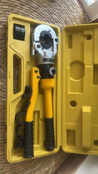 Herramienta profesional para prensar tubos multicapa. Incluye maletín para su transporte y almacenamiento. -Incluye mordazas 16-20-25 y 32 - Prensa hidraulica. - Juego de matrices. - Maletín de plástico resistente.