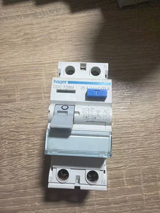 Interruptor diferencial Hager CDC 728M. - Intensidad nominal: 25 A. - Sensibilidad: 0.03 A. - Tipo AC.