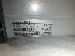 Inversor de corriente continua a alterna de onda senoidal pura para instalación aislada. Inversor de buena calidad, ideal para caravanas, instalación aislada, aparato de la reputada marca holandesa tbs, es un aparato serio , no es chino. - Modelo: Powersine 1800 - Voltaje: 24V - Potencia: 1800W - Marca: TBS Electronics - Certificación CE Escucho ofertas.