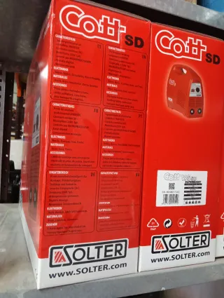 Los equipos de soldadura INVERTER COTT-195 SD presentan un diseño compacto e innovador. Este equipo destaca por la posinilidad de soldar tambien mediante el procedimiento TIG. Equipados con los dispositivos ANTI-STICK, AIR-FORCE, HOT-START y LIFT-ARC permiten soldar con cualquier tipo de electrodos y son capaces de satisfacer las aplicaciones más diversas en trabajos de reparación, mantenimiento, instalación, etc. Minimo consumo por su alta eficiencia energética y facil manejo.Se pueden conectar a un generador siempre que la potencia del generador sea superior al 35-40%.
