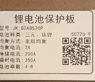 Sistema de gestión de batería (BMS) JK2A8S20P. - Diseñado para 8 celdas. - Corriente máxima de 200 amperios.