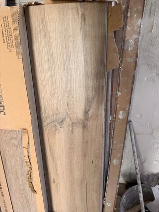 porcelanico color roble (madera claro) tanto como para suelo o pared. unos 20m2 a 20€ m2